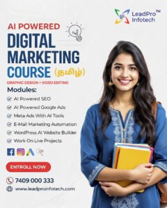 Coimbatore has become one of the best cities to learn digital marketing due to its growing industry demand, affordable education, and strong placement opportunities. With access to quality training institutes like LeadPro Infotech, students can gain practical skills and secure a successful career.